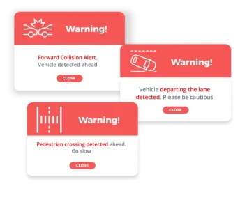 Powiadomienia dostarczane przez oprogramowanie z kamer wideo ostrzegają menedżerów flot i kierowców o potencjalnych problemach związanych z bezpieczeństwem lub nieefektywnością w ich działaniach.