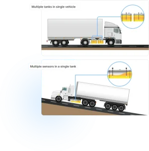 Pojazdy ciężarowe zazwyczaj mają dwa lub więcej zbiorników paliwa. Oprogramowanie zostało zaprojektowane do monitorowania poziomu paliwa w wielu zbiornikach w jednym pojeździe.